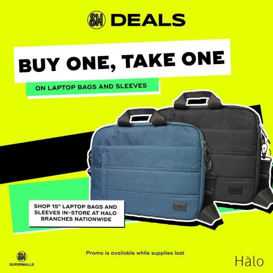 • Buy One, Take One on laptop bags and sleeves from HALO. Discount vouchers are also available at smdeals.com. Promo is available while supplies last.