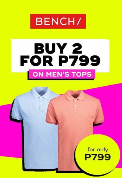 • Buy 2 for 799 on Men’s Tops at Bench. Promo runs until April 20, 2022.