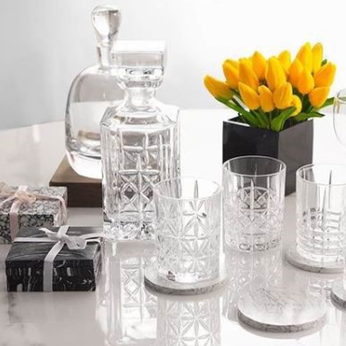 • Decanters and glassware for your dad’s bar corner.