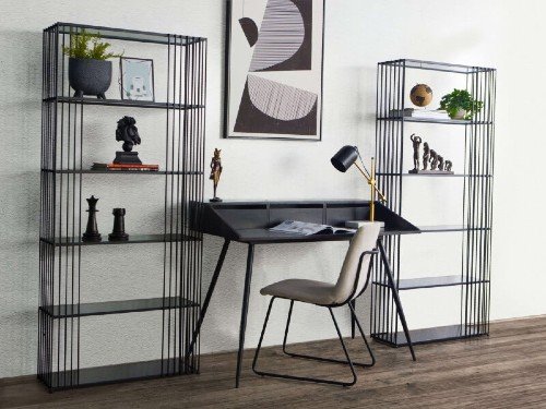 Our Home’s Gavin Desk and Hermione Chair are sleek and efficient, just like your dad. Trevor shelving and other accessories like lamps and wall art to compliment.