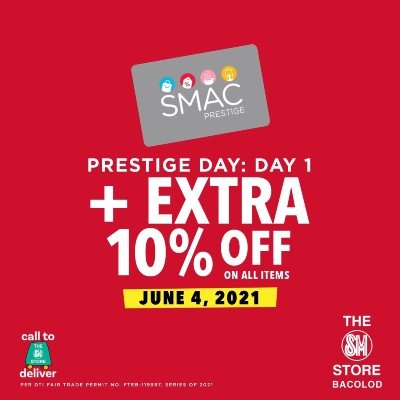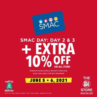 • SMAC Day on June 5 and 6: Extra 10% discount with minimum P3,000 single-receipt purchase.