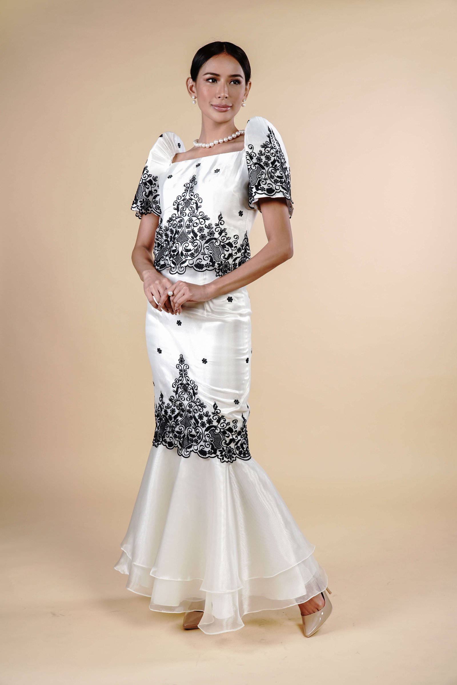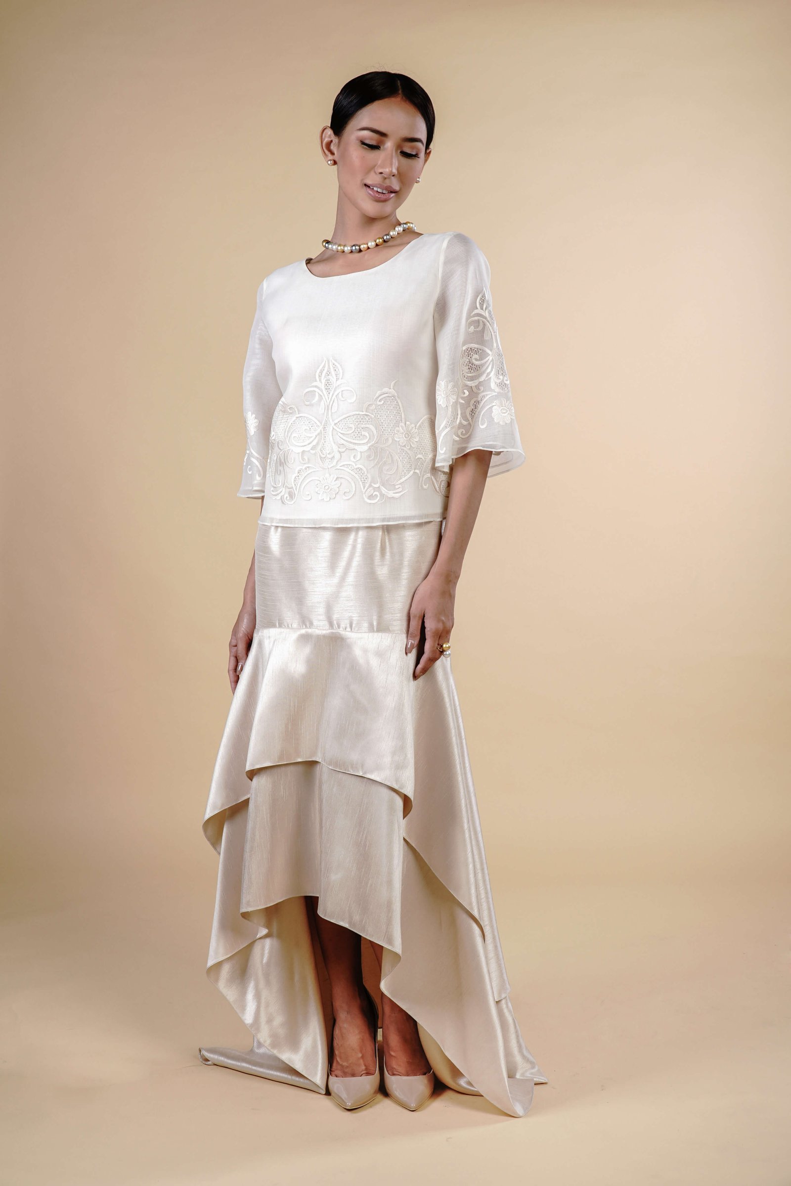 4. An inabel ternotop with pineapple designs worn with a mikado silk ballgown skirt for today’s modern Filipina.