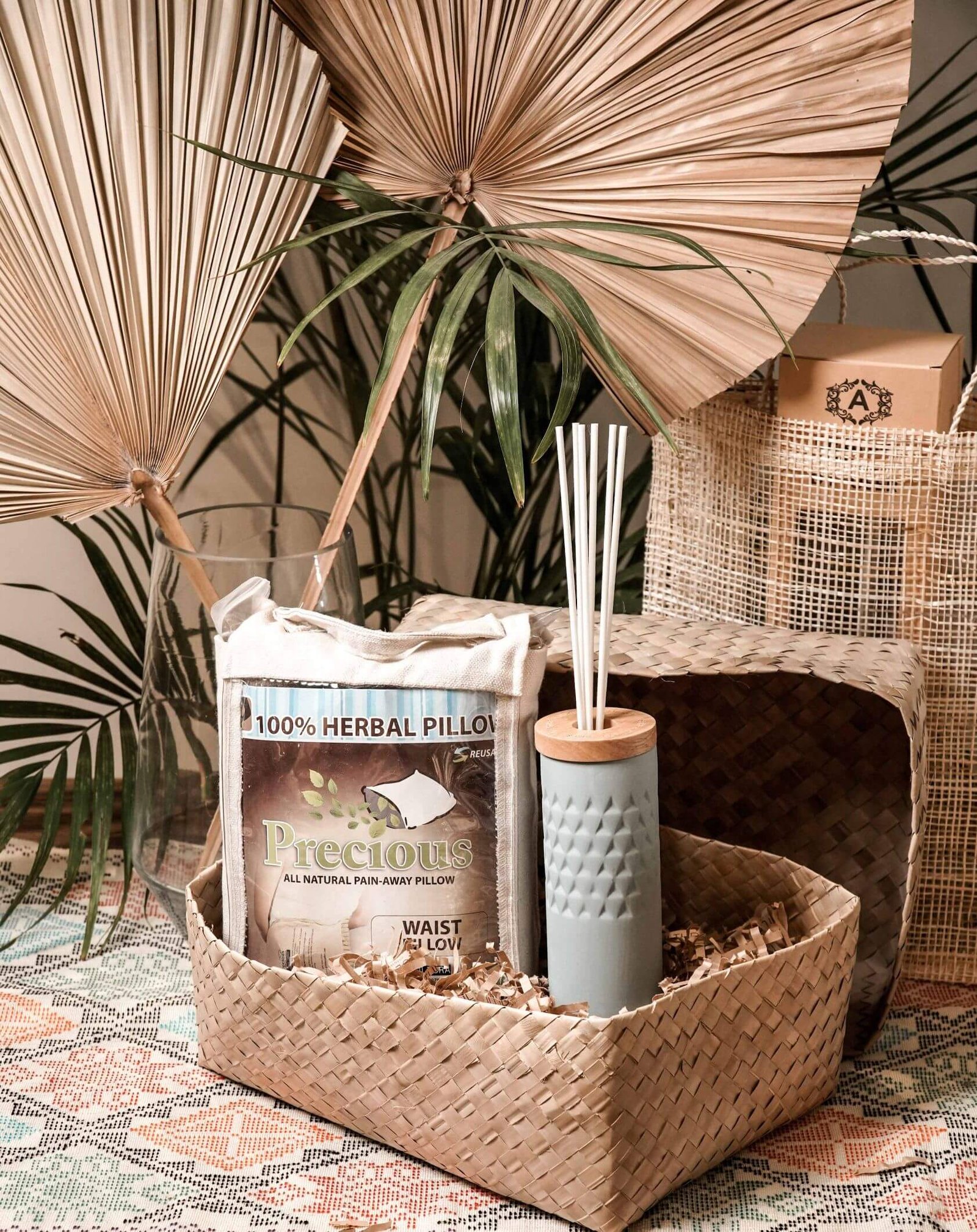 - A Gift of Serenity. A gift set of a microwaveable herbal pillow that soothes the mind and body and scented reed diffusers in a lovely ceramic package.